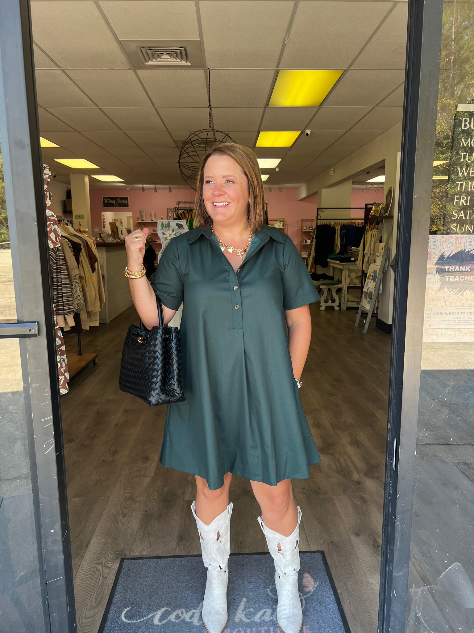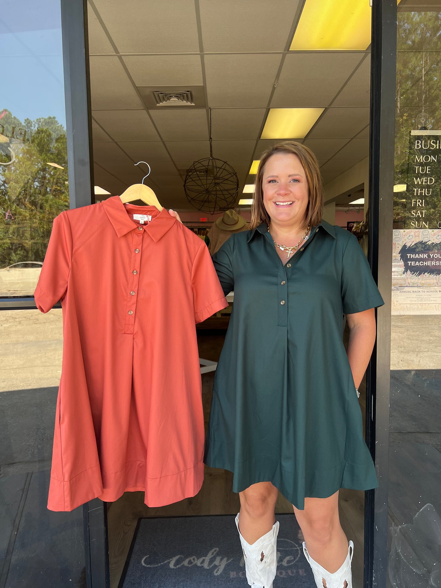 D23830 Solid short sleeve collared mini dress featuring button detail at front.