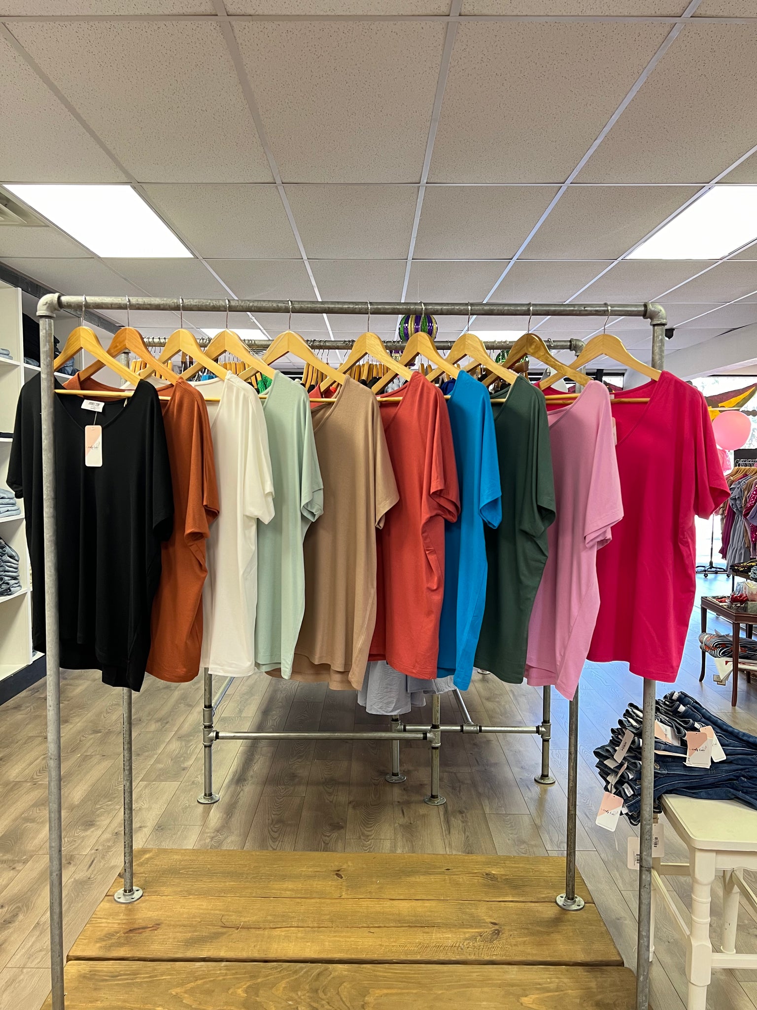 ALL YOUR CASUAL DAY FITS NEED A TOP AS CUTE AS THIS ONE. MADE FROM LIGHTWEIGHT AND SUPER SOFT MATERIAL, THIS TOP FEATURES A V NECKLINE, SHORT SLEEVES AND A RELAXED FIT. STYLE WITH MOM JEANS FOR A BASIC OOTD.