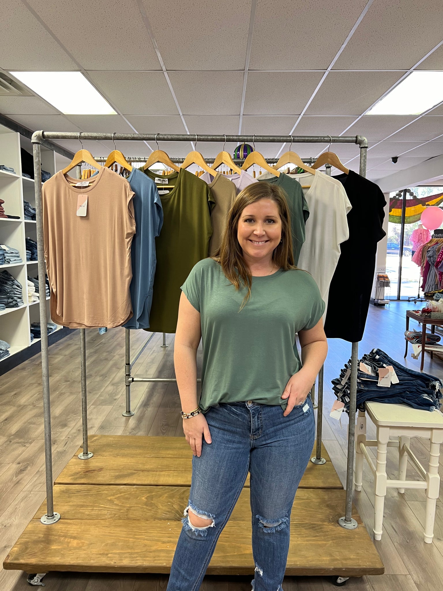 UPGRADE YOUR EVERYDAY STYLE.THIS SUPER CUTE TOP COMES WITH A ROUND NECK, SHORT DOLMAN SLEEVES AND A RELAXED FIT THAT SOFTLY DRAPES AROUND YOUR CURVES AS YOU MOVE. TWIN SLITS AT SIDES ADD UP TO THE LOOK. PAIR WITH DENIM SHORTS