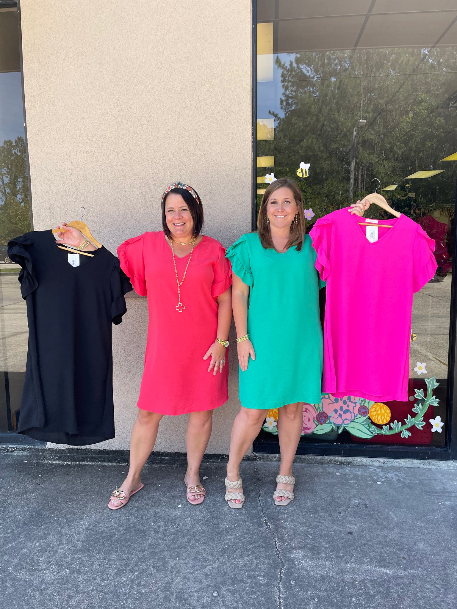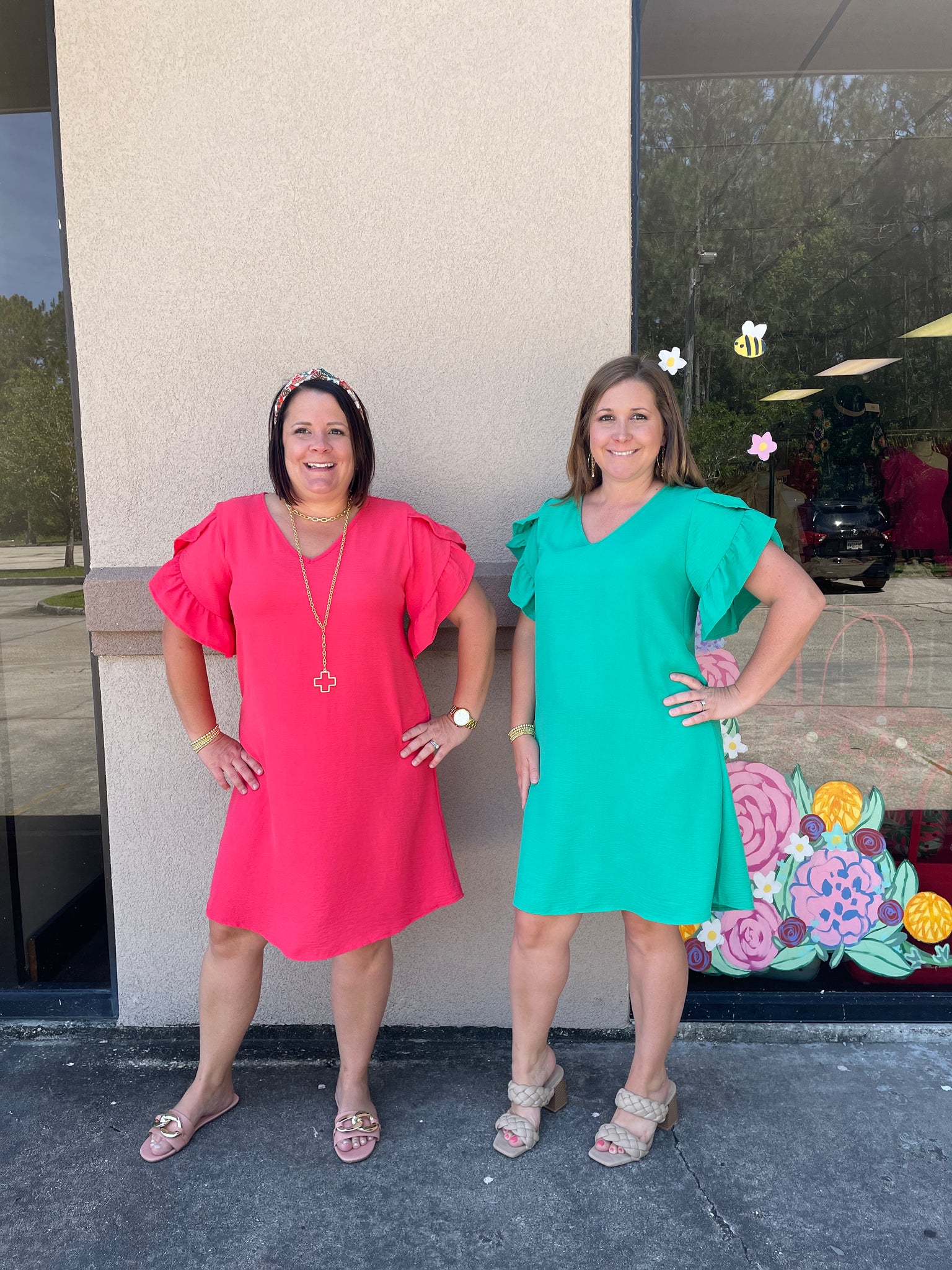 SD4183 Solid v neck air flow dress with ruffled sleeves