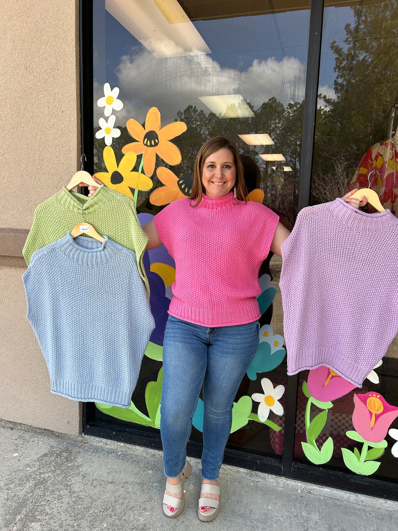 SS9359 DROP SHOULDER SLEEVELESS MOCK NECK KNIT SWEATER TOP