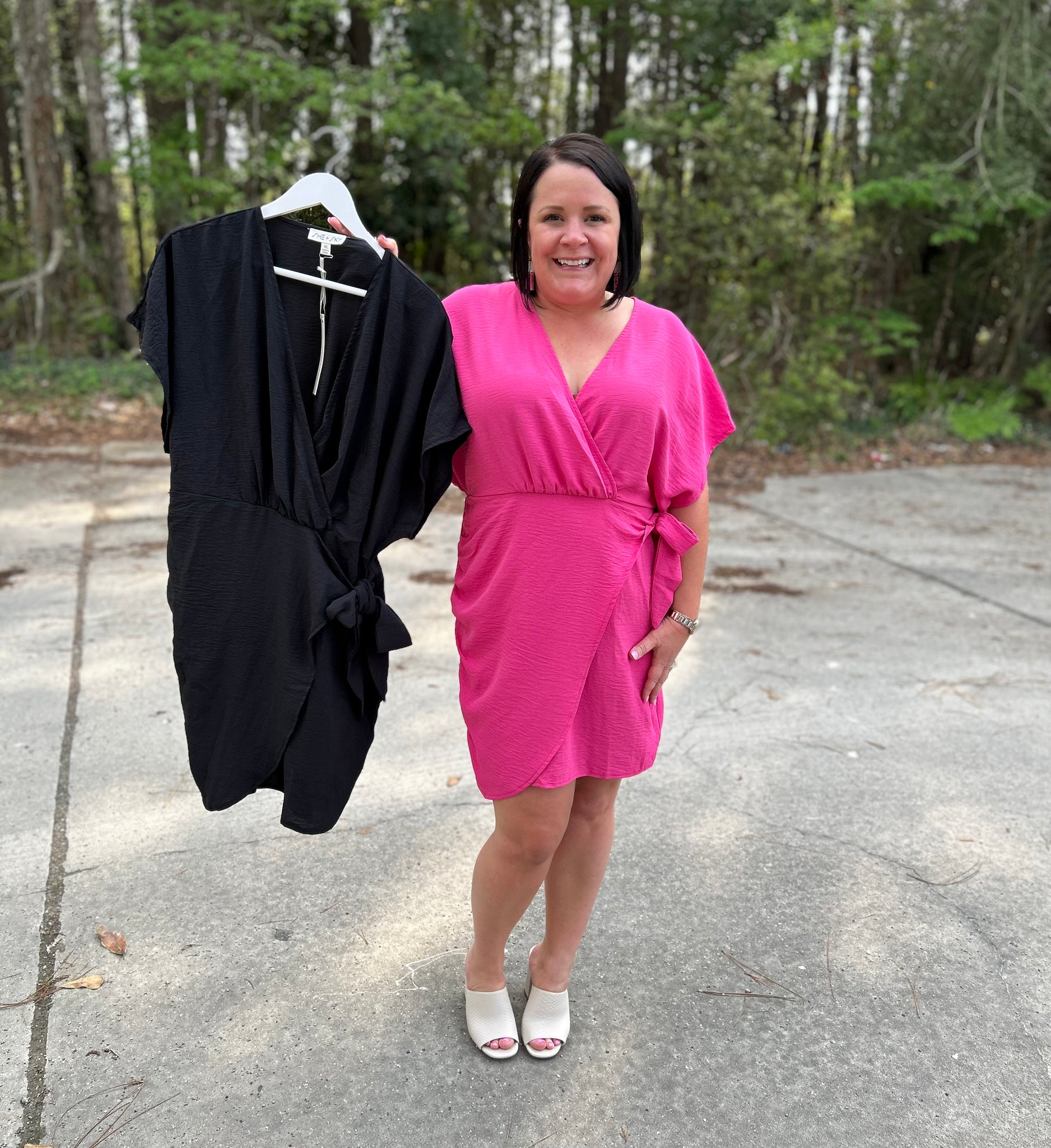 SY3622-Dolman Sleeve/Surplice Top Side Tie Dress