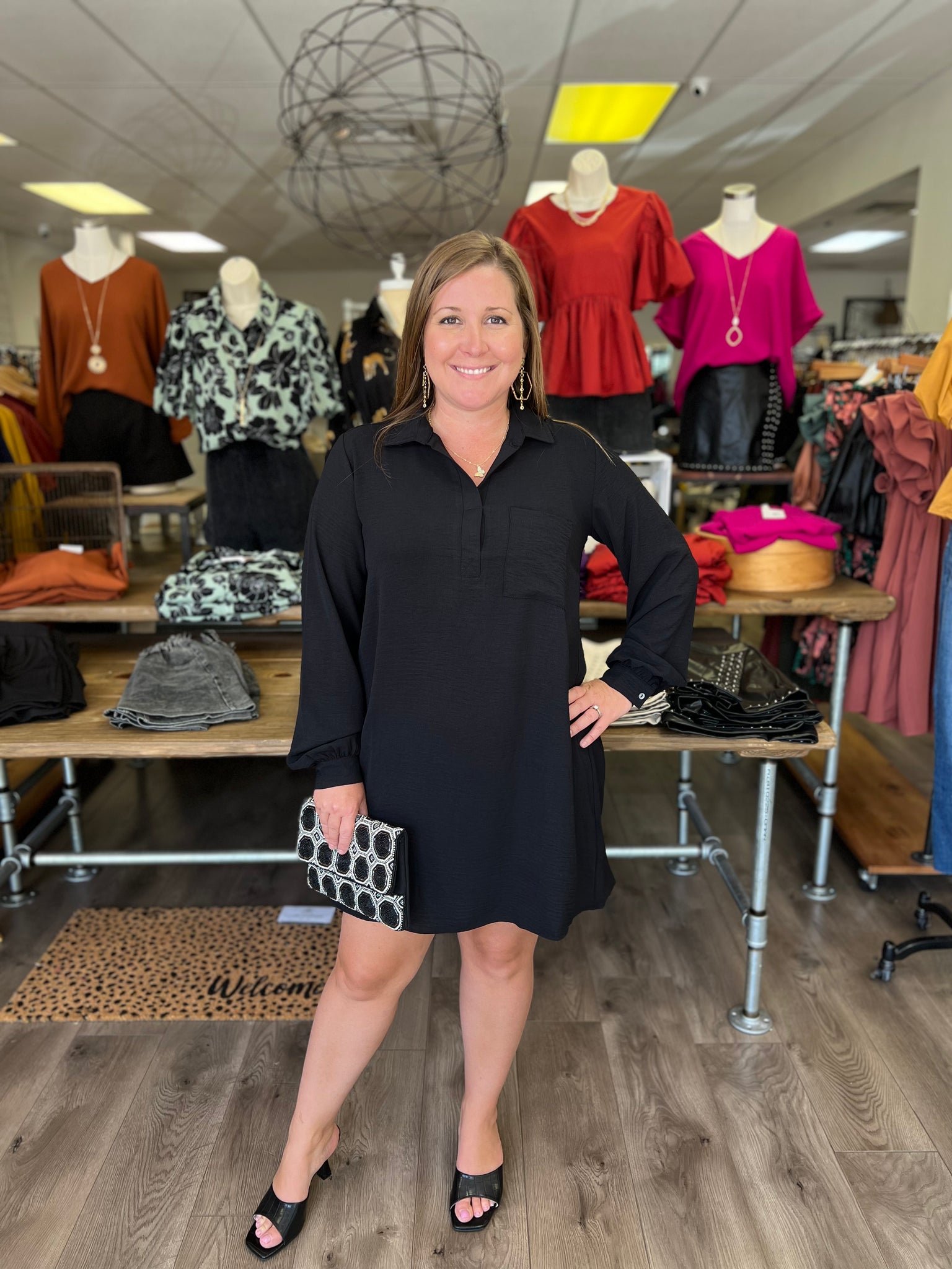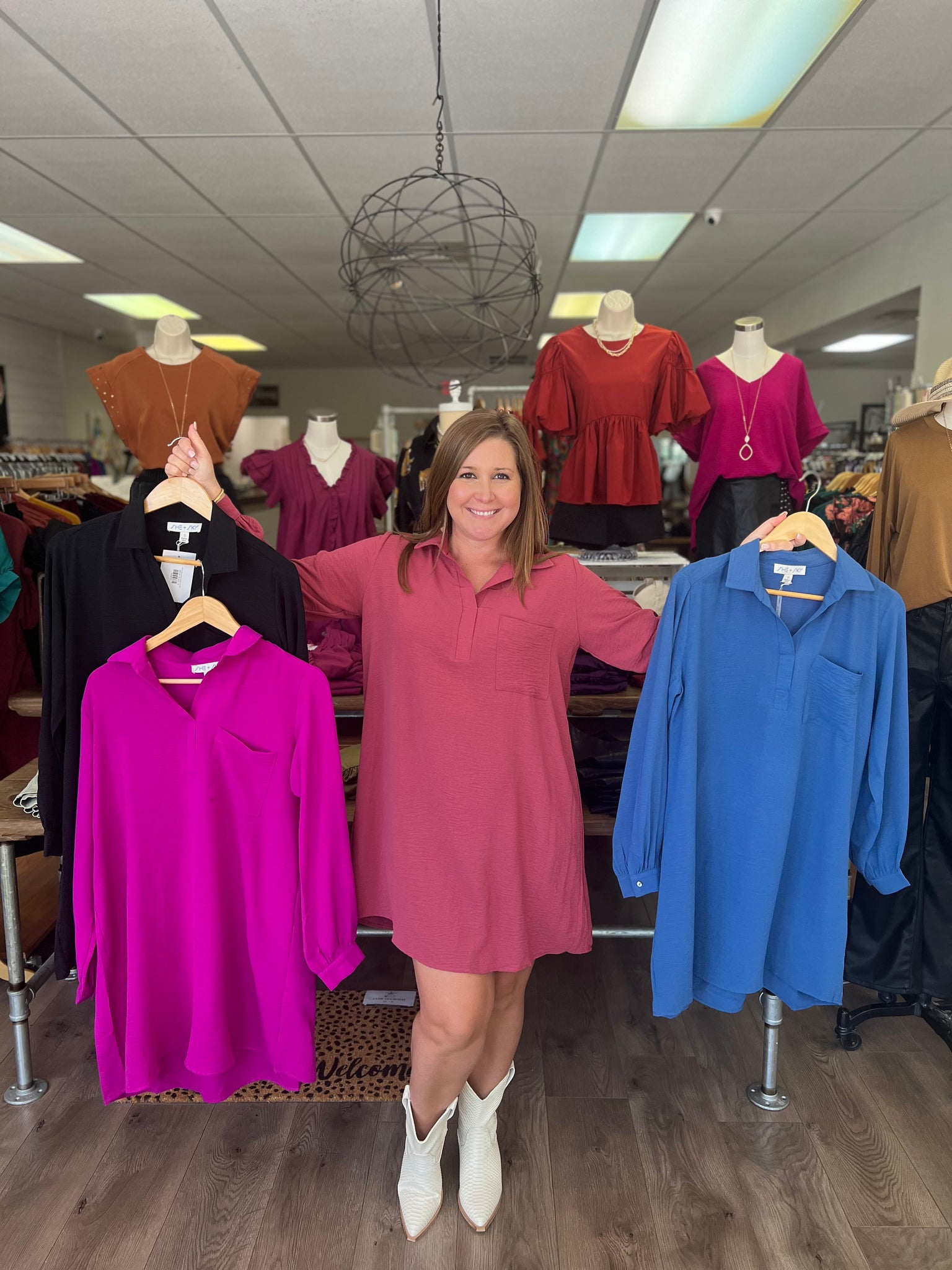 SY5211 LONG SLEEVE WOVEN COLLARED DRESS WITH SIDE POCKETS