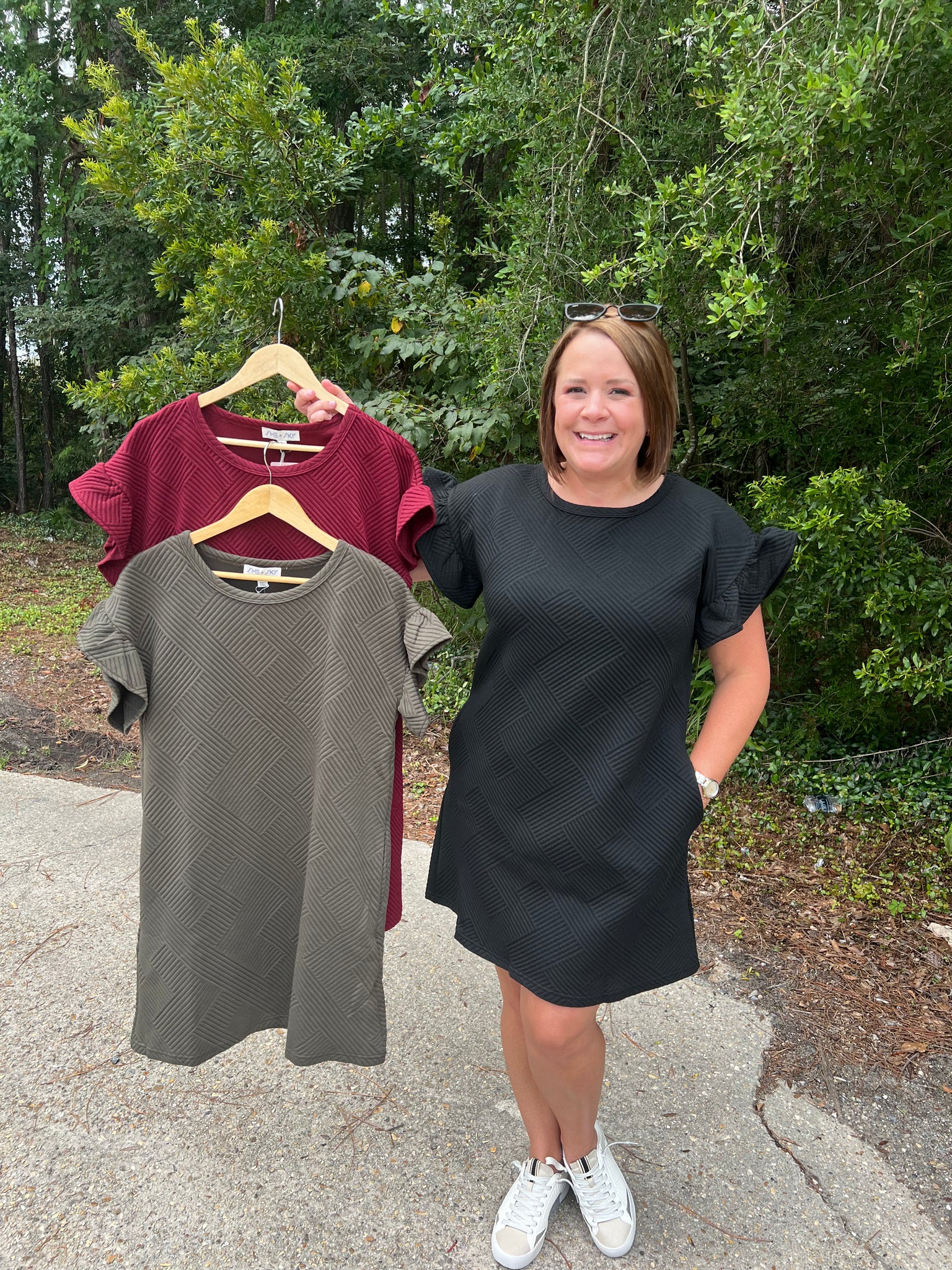 SY7072 Ruffle Sleeve Quilted Knit Dress