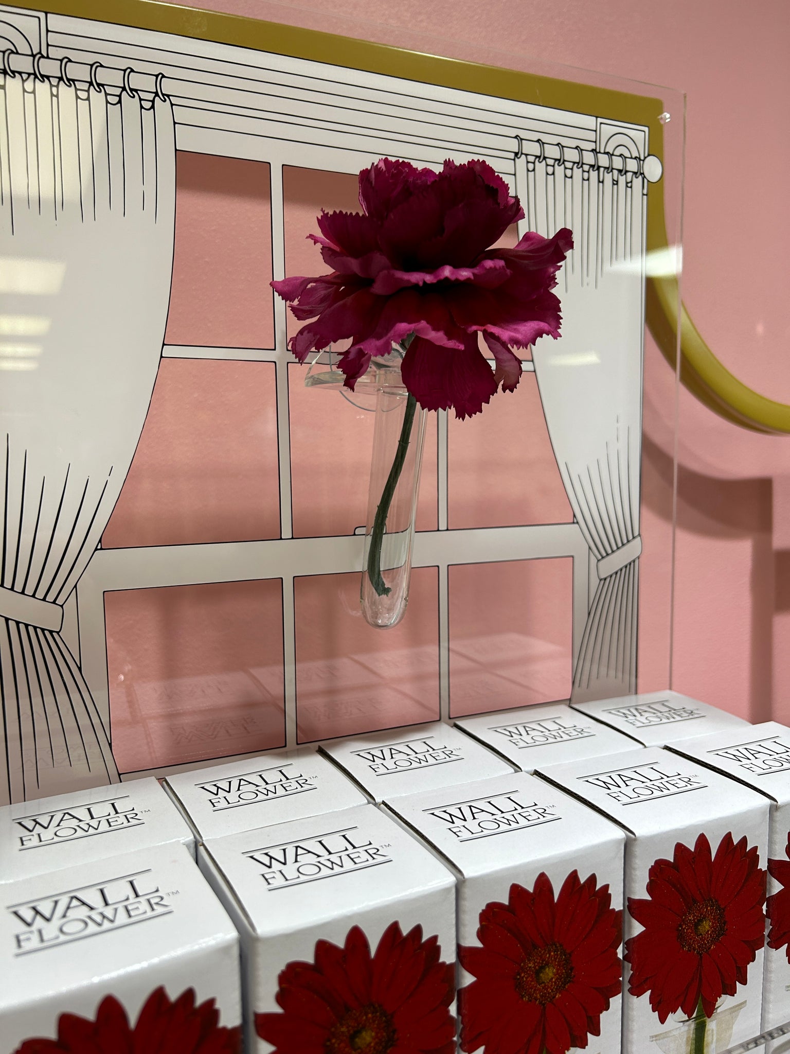 allflower is made with handblown glass and an acrylic base. This easy accent can go on any window easily and can be filled with live or faux flowers for an easy and impactful dècor piece.